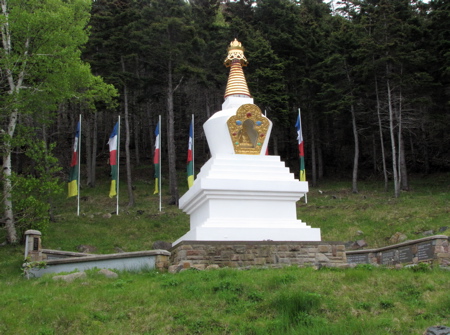 Gampo Abbey's "Stupa of Enlightenment" back up the gravel road will give you a doubletake, especially if you happen along at night and find it lit up by a hundred tealights. It's only a five minute walk from the Lookout and a good place to meet local or visiting Boods.